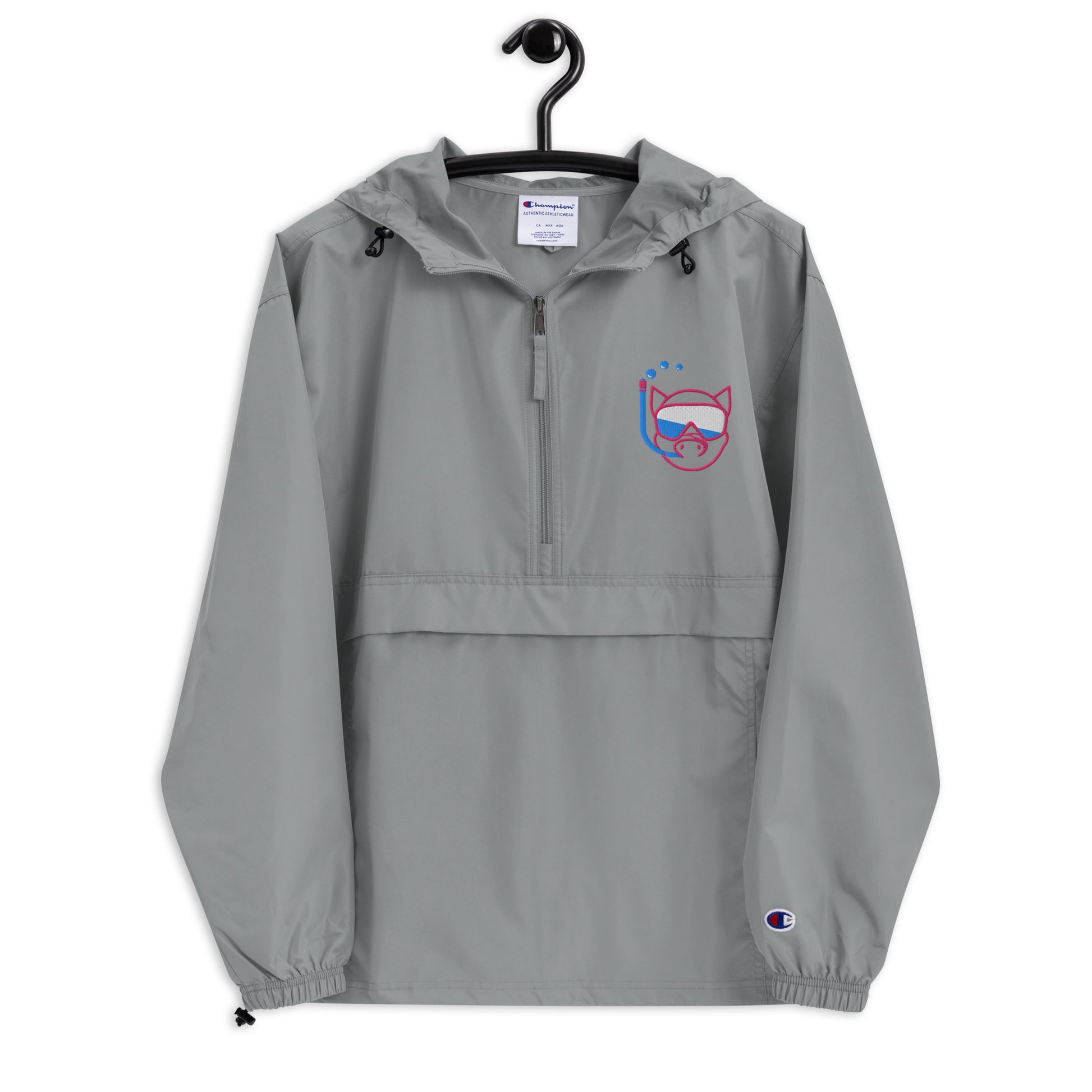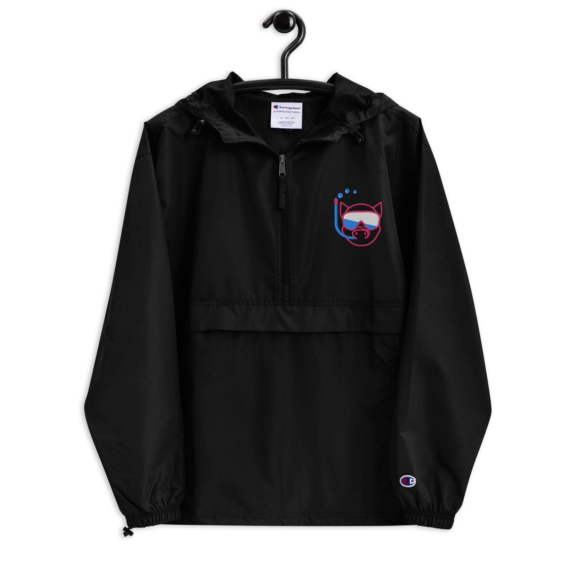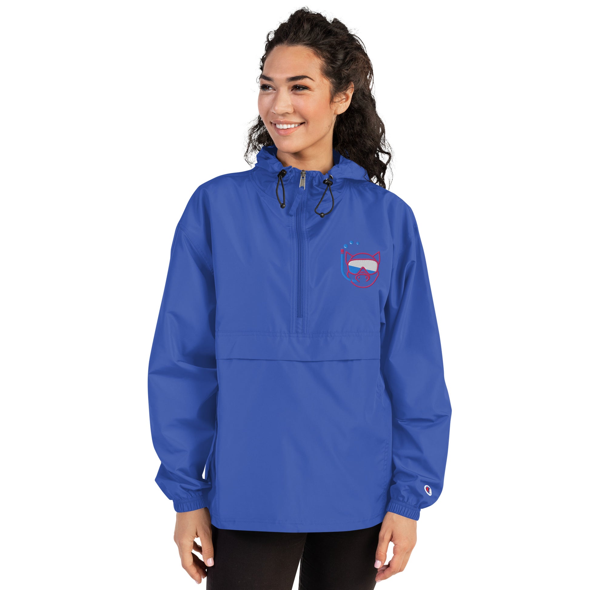 Protect yourself from the elements with this Champion packable jacket. This wind and rain resistant polyester jacket with a detailed embroidery design has a practical hood, front kangaroo pocket, and zipped pouch pocket which you can pull out and use to scrunch the jacket into for convenient storage.